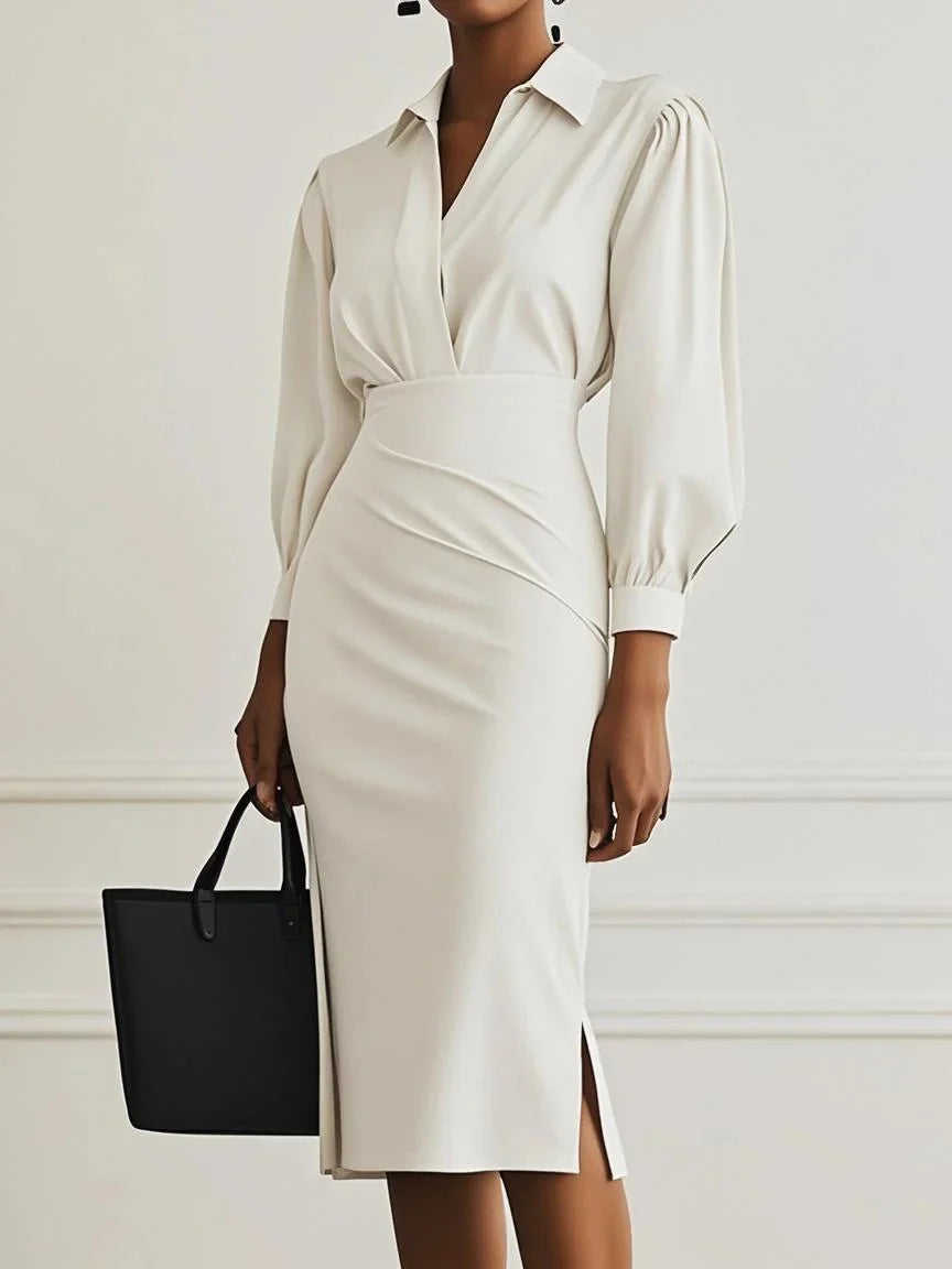 • Feminine Design: The deep V-neckline and puffed shoulders create a flattering silhouette that enhances natural curves with subtle elegance.